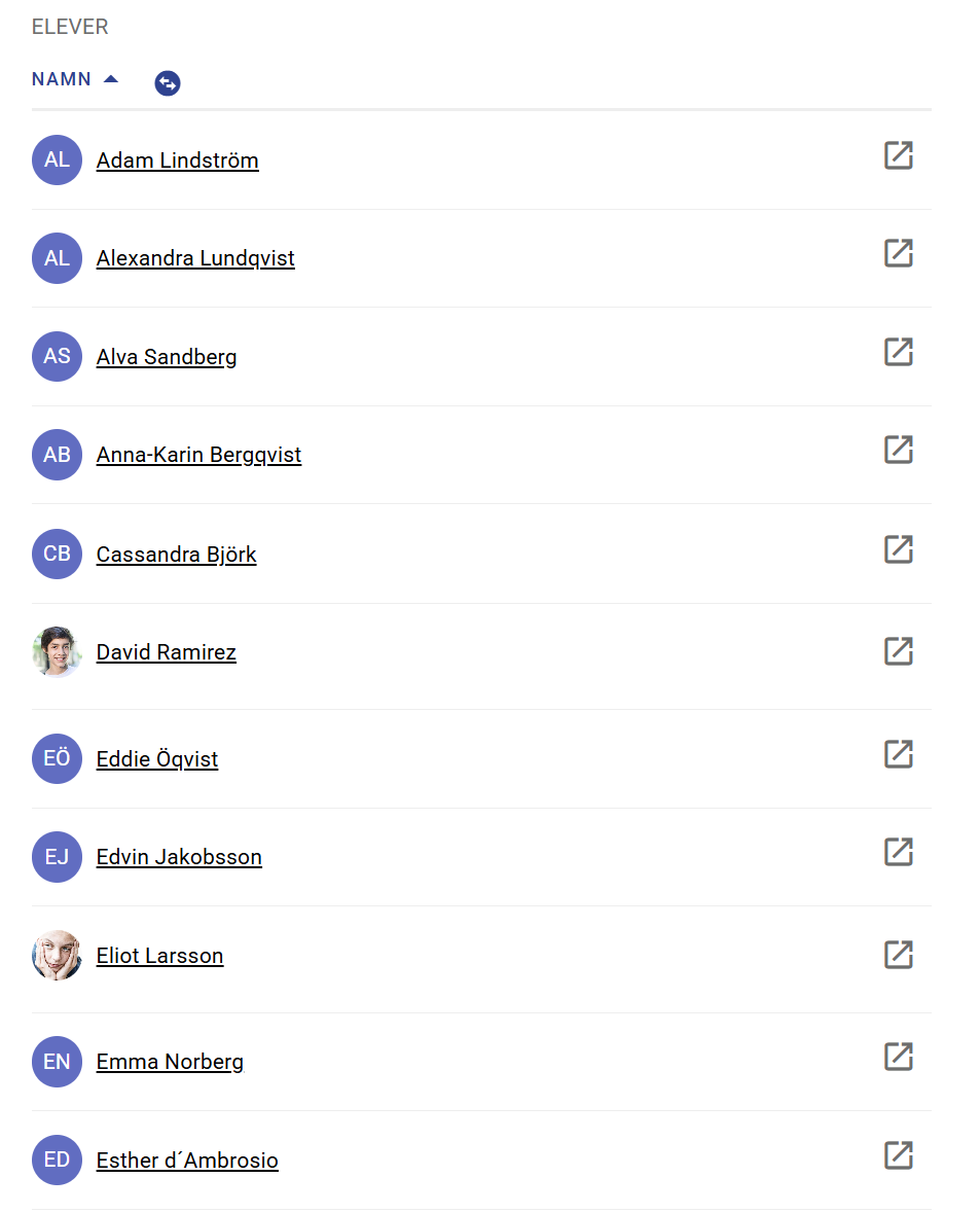 3 – Scrolla ned, en bit på skärmen, till man noterar eleverna i klassen och/eller kurs-/ämnesgruppen