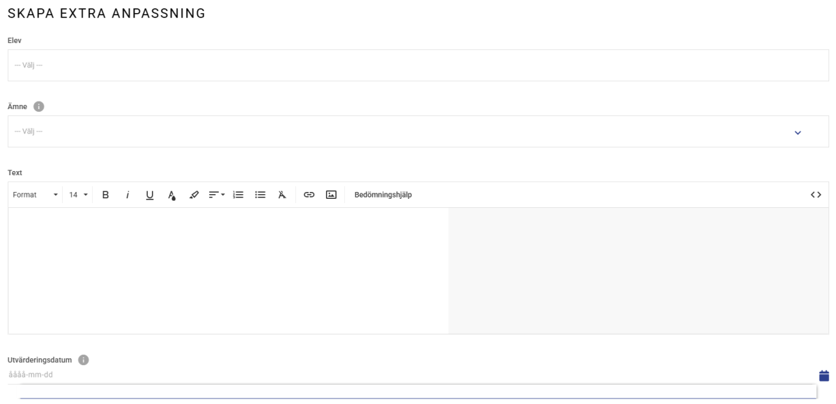 Denna funktion är själv essensen av Extra anpassningen. Dvs. det är här Extra anpassningen för Eleven/Studenten specificeras i textform.