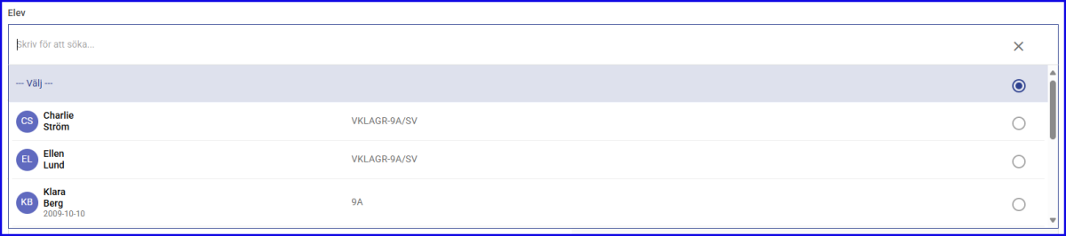 Val av Elev.